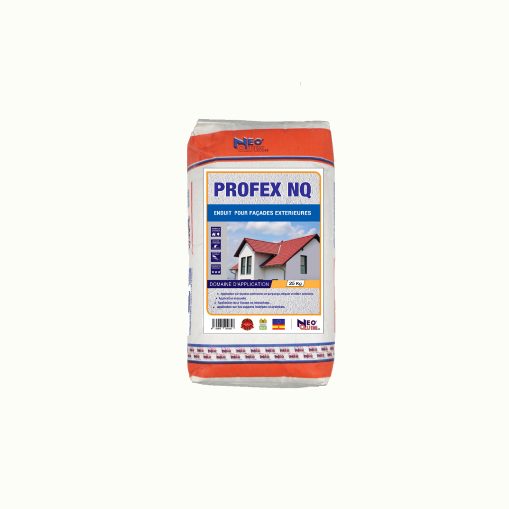 PROFEX NQ est un enduit de façade en poudre contient des liants hydrauliques, destiné pour le lissage ou les réparations de différents types de murs : briques, béton, pierres, céramique…etc. Il convient à l’intérieur et à l’extérieur des habitations.